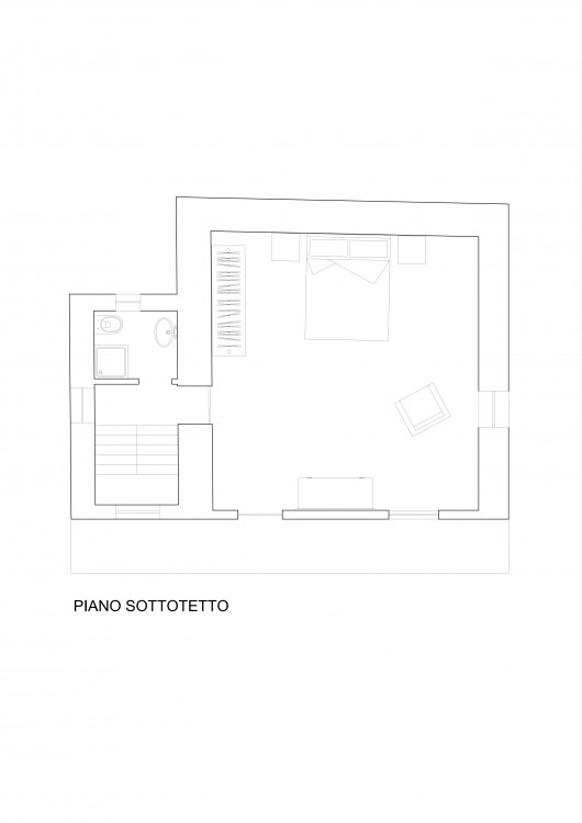 Das Dachgeschoss verfügt über ein Bad, kleiner Flur und Schlafzimmer mit Balkon.