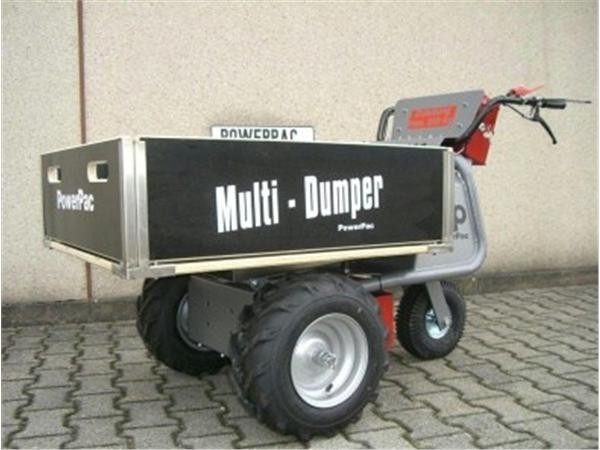 Powerpac Multi-Dumper Elektro med elektrisk motor, er miljøvenlig, lydsvag og røgfri og kan dermed anvendes i mange forskellige sammenhænge og miljøer, bl.a. hos anlægsgartnere, hestestalde, minkfarme, grisefarme og mange andre.