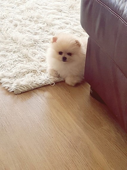 smuk og sød miniature Pomeranian pige i fløde kiks farve. Hun er dejlig, legesyg, venlig og fuld af energi, men kan lide at kæle for. Hun er stille og pappy, meget lydig. Sweetheart prinsesse. Meget lille i størrelse. Hun forventes at vægte kun omkring 1.5-1.8kg som fuldt udvokset voksen. Micro tilhugget, vaccineret og ormekur. Fås nu kontakte os. Tak.