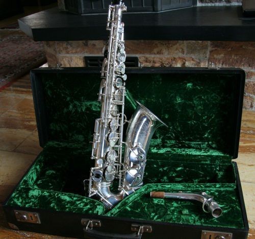 Dette er en sølv Mark VI Alto Sax, en af de første der nogensinde er lavet af Selmer i 1954. Stelnummer er 55.944.