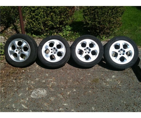 Originale alfa alufælge med Continental dæk. Lidt mærket af kantstenskræmmer, men ellers i rigtig god stand - både dæk og fælge.