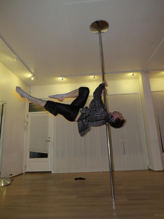 Mandlig pole danser der laver massevis svære pole tricks såsom iron x, pole danser har over 6 års erfaring og er dansk mester i pole dans i år 2014
